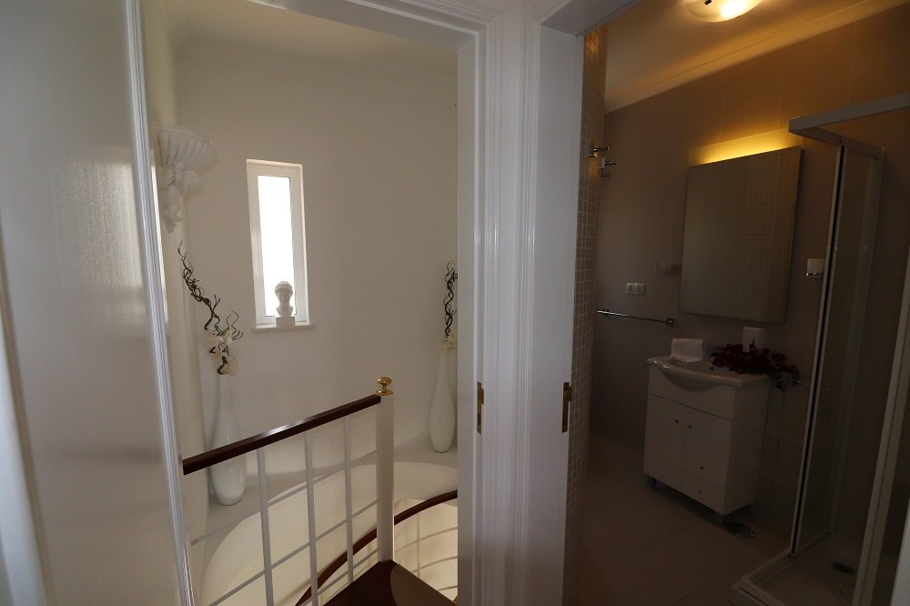 Geschirrspüler, Induktionsherd, 2 Kaffeemaschinen… ergeben eine wunderbare komplette Küche. Die Waschmaschine ganz typisch draußen im extra Raum. Um die Ecke dann der Fitnessraum und der Pool mit Außendusche für Sie zur alleinigen Nutzung. Hier können Sie ganz ungestört sonnenbaden, relaxen oder etwas trainieren. Frühstück oder Cocktail am Pool? Ideale Casa für das ganze Jahr und immer angenehmes Klima! 2 Etagen = 2 Klimaanlagen inklusive.