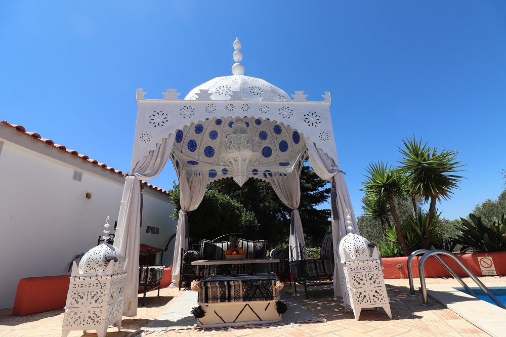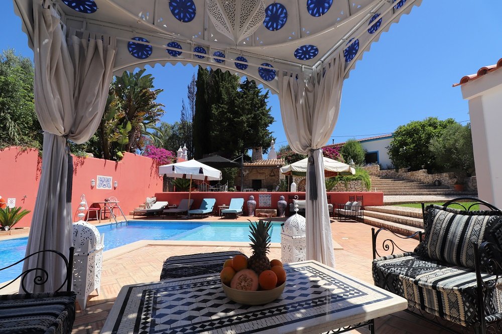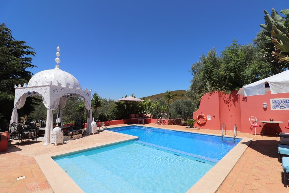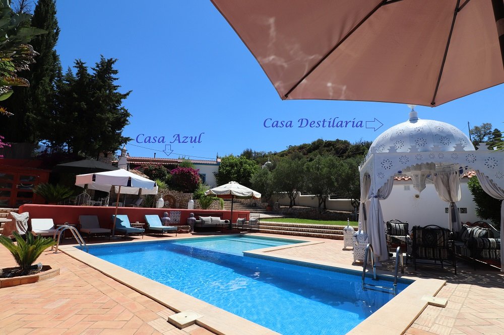 Der Mittelpunkt zwischen beiden Ferienhäusern ist die traumhaft schöne Pool Oase mit besonderer maurischer Aura zwischen Oliven, Orangen und Zypressen. Eine unglaubliche Anziehungskraft verströmt dieser wunderschöne Ort, den alle Gäste zu jeder Stunde genießen können. Abends bei einem Glas Wein am Feuer, relaxen in der Sonne oder auch ganz sportlich im Pool. Die 50.000 m² Quinta bietet Ihnen viel Platz zum Entspannen, wandern, schwimmen oder sich sportlich zu betätigen. Boule, Fußball, Cricket, Federball, Tischtennis und ein Unterwasserfahrrad! Wanderwege direkt vor der Haustür. Ein echtes Paradies! Die Eigentümer bewohnen Ihre eigene Casa mit Pool auch auf der Quinta.