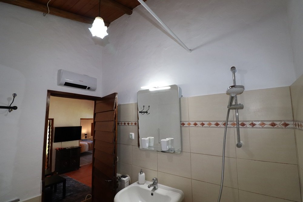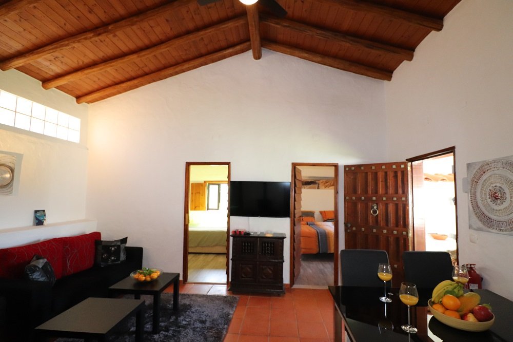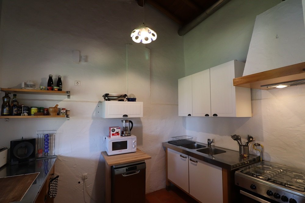Die Casa Azul befindet sich oberhalb des Pools und bietet Privatsphäre! Eigene Terrasse mit Hügelblick, 200 m² Zypressen Garten und Holz/Gas Grill. Dort befinden sich auch Gartenmöbel (Tisch, Stühle, Couch, Sonnenliegen) die nur für Sie bestimmt sind. Durch Ihren eigenen Eingang gelangen Sie vom Carport in die Casa mit Wohnzimmer und Essbereich, 2 Schlafzimmern, offener Küche sowie Badezimmer. Die Restaurierung der Casa ist eine Mischung aus zeitgenössischem Glanz und Elementen faszinierender Tradition geworden. Dadurch immer angenehmes Klima und dabei Klimaschutz und die CO2 Bilanz senken, da Energieselbstversorger! Im Winter überall Heizung und Kamin vorhanden, sowie eine Infrarotkabine als Highlight. Dt. SAT-TV und 4 G WLAN natürlich inklusive.