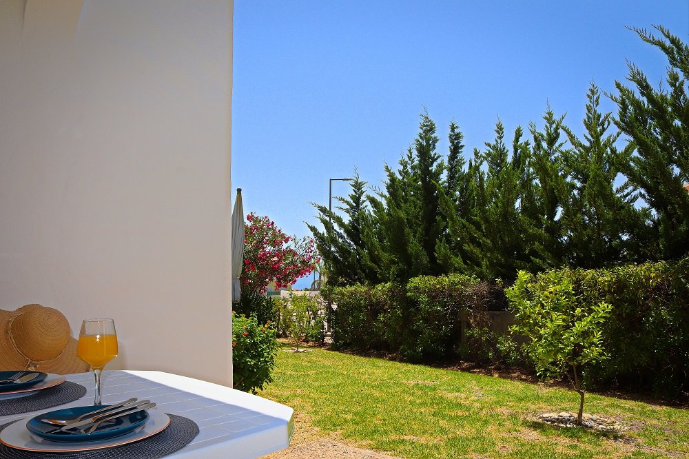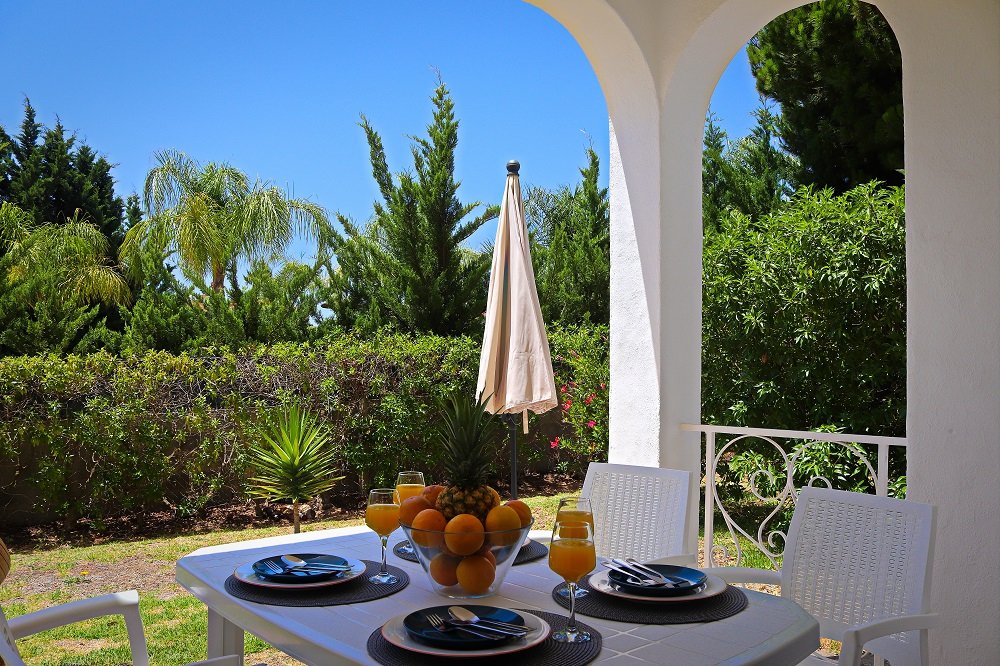 Diese Casa befindet sich im Erdgeschoss mit einem wunderbaren Blick zum Meer. Hier erwartet Sie ein schönes Wohnzimmer mit Terrasse/Garten und Essbereich, zwei gemütliche Schlafzimmer, ein Badezimmer mit Badewanne, eine Küche mit Waschmaschine und eine Dachterrasse. Von beiden Terrassen sehen Sie das Meer! Die Sonnenuntergänge auf der Dachterrasse sind magisch. Digitales SAT-TV garantieren Ihnen alle dt. Programme und Radiosender + WLAN. Für die kühleren Monate steht Ihnen ein Kamin im Wohnzimmer mit Zuluft in ein Schlafzimmer und zwei mobile E-Heizungen zur Verfügung. Der sehr große Poolbereich (+ extra Kinderpool) bietet der ganzen Familie viel Platz zum relaxen, schwimmen und spielen. Spielplatz und Snackbar direkt vor Ort. Der maurische Baustil setzt sich hier überall durch und ist immer wieder ein exzellentes Fotomotiv.