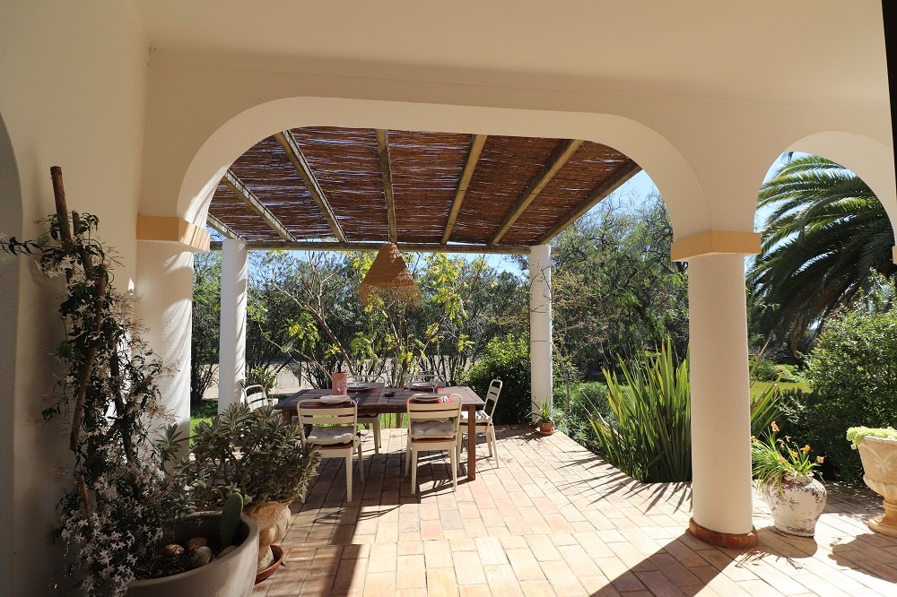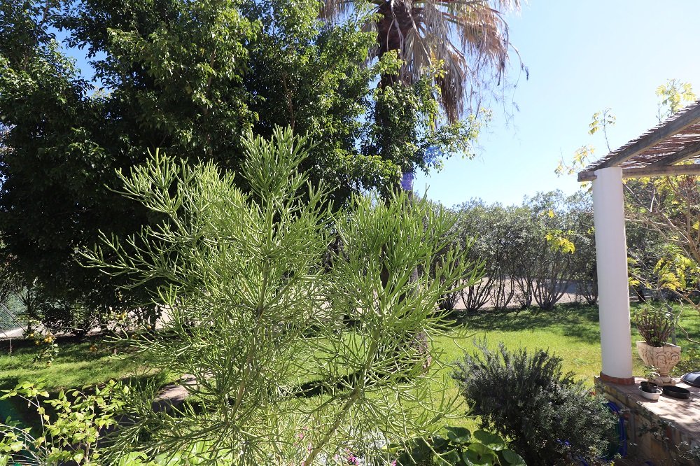 Tolle Ferien Casa in einzigartiger Rundbauweise und mit zentralem gemütlichem Patio und Säulengang! Dieser Patio/Innenhof in mitten der Casa hat einen wunderschönen Springbrunnen und ist perfekt zum relaxen und grillen! Vom Wohnzimmer und den beiden Schlafzimmern aus können Sie bequem den Patio betreten. Beide Schlafzimmer verfügen über je ein Bad en suite. Vom großen Wohnzimmer mit Kamin + SAT-TV haben Sie Zugang auf 2 unterschiedliche Terrassen mit Blick in den Garten mit riesigen Palmen! 6.000 qm mediterraner Garten, Ihr eigener Tennisplatz und eine Dachterrasse stehen Ihnen hier zur Verfügung. Dieses Ferienobjekt ist ideal für Kinder ab 5 Jahre. Das nette Eigentümer/Verwalterpaar wohnt in einem separaten Teil der hinteren Casa und kümmert sich um alles. Jeder hat hier sein eigenes Reich.