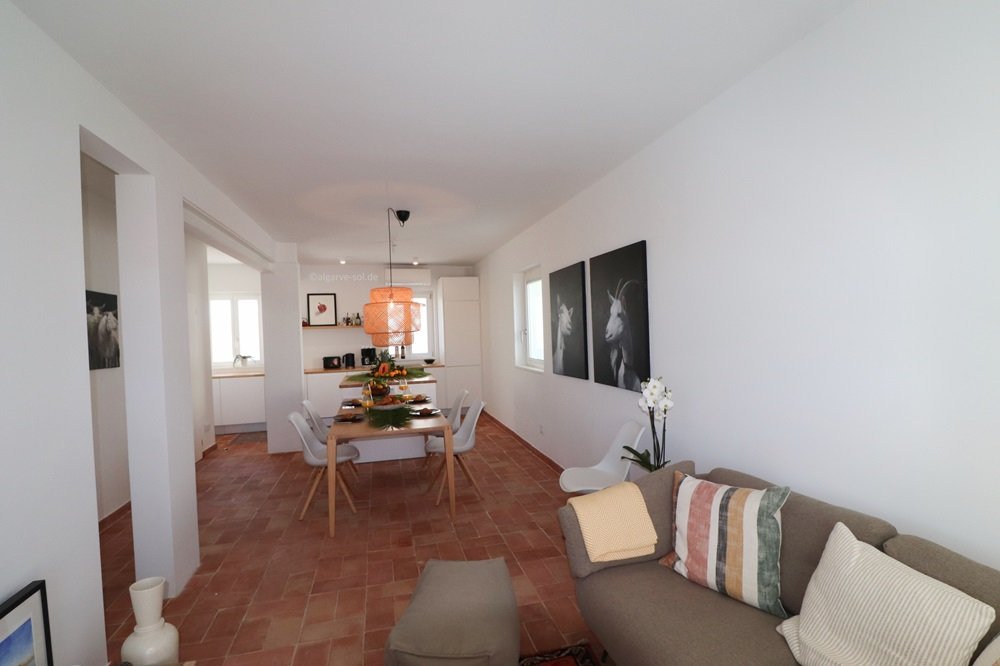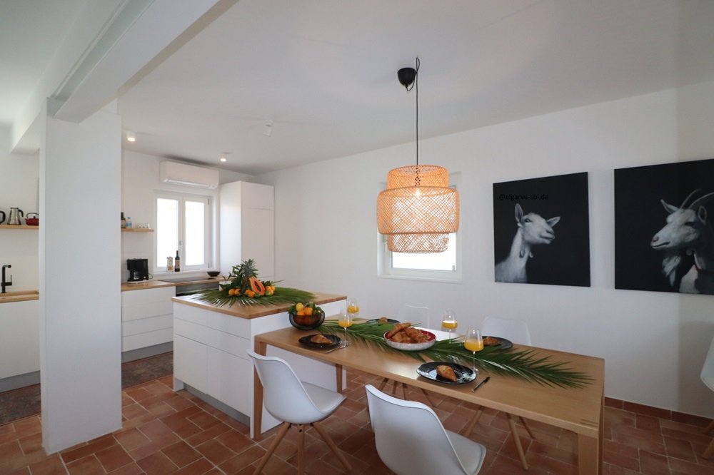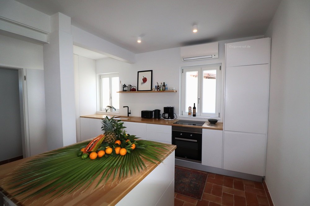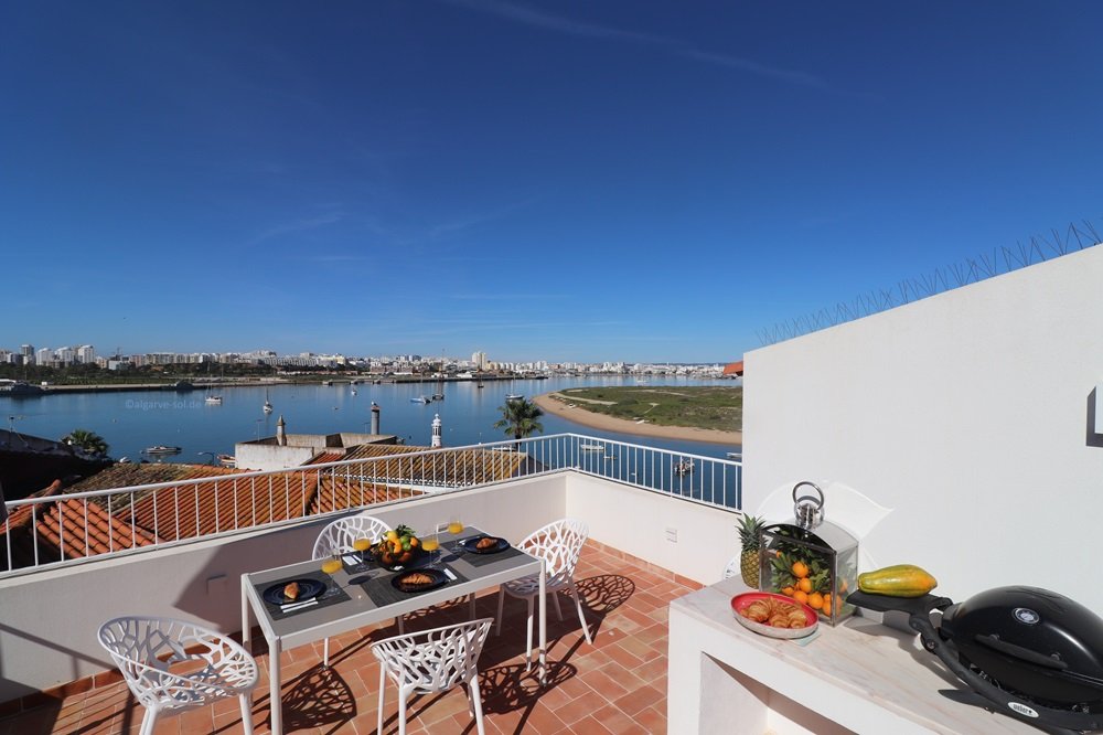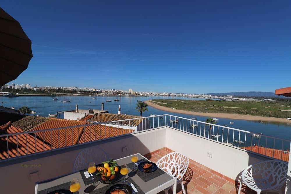 Helle, topmoderne und einfach wunderschöne Casa mit großer Dachterrasse und exzellenten 180° Blick über den Fluss bis nach Portimão,Monchique und zum Atlantik! Viel Platz für bis zu 6 Personen auf 3 Etagen. Im Erdgeschoß befinden sich 2 Schlafzimmer mit Klimaanlagen, ein Patio en Suite und ein super Duschbad. Eine Treppe höher im Zentrum der Casa die offene Küche mit Essbereich und das Wohnzimmer. Die perfekt ausgestattete Küche hat überall ein Fensterblick, großer Essbereich für 6 Personen und das Wohnzimmer mit gemütlicher Couch und Meerblick beim streamen. Auch diese Etage verfügt über ein Duschbad. Eine Etage höher ein weiteres helles Wohn-/Schlafzimmer mit Zugang zur Dachterrasse. Hier könnten Sie auch Ihr Home-Office einrichten! Die Dachterrasse ist die Attraktion bei Sonnenuntergang oder auch zum Frühstück – einfach einmalig und atemberaubend. Hochwertige Ausstattung und geschmackvoll in Szene gesetzt. In den kühleren Monaten werden Sie die Fußbodenheizung im ganzen Haus genießen. Geeignet für Kinder ab 8 Jahre.