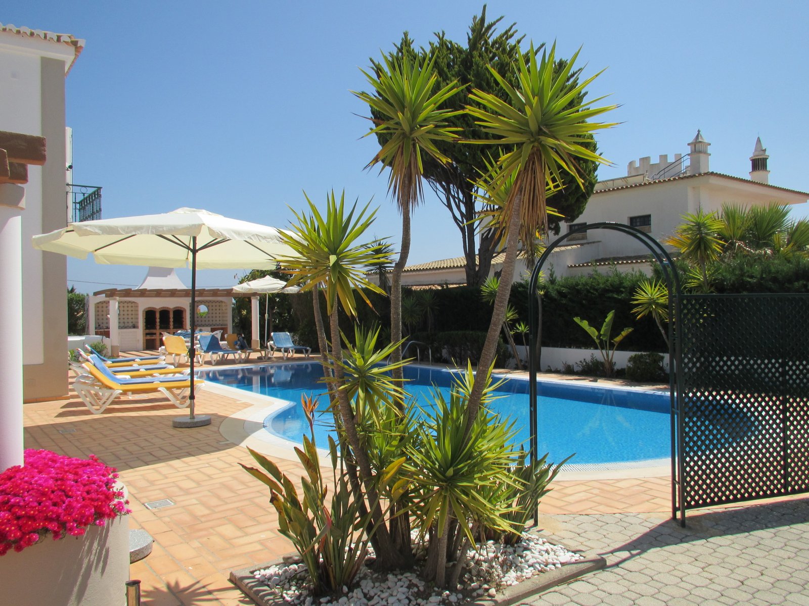 5 km westlich von Albufeira liegt Sesmarias - eine kleine Ansammlung wunderschöner exklusiver Villen oben auf einem Felsplateau. Der Golfplatz Salgados mitten im Naturschutzgebiet ist auch nur 3 km von der Ferienvilla entfernt. Unterhalb sind traumhafte Strände wie der Praia do Castelo. Nur 400 m von der Ferienvilla. IT-Treffpunkt der Stars und Sternchen Portugals. Albufeira ist das St. Tropez der Algarve - hier trifft sich alles Tag und Nacht am Mittelpunkt der Algarve. Jegliche Freizeitsportmöglichkeiten lassen sich hier starten. Hier gibt es alles von Ruhe bis Party. Die vielen einzigartigen Sandstrände Sao Rafael, da Coelha, do Castelo, Evaristo und Galé gehören zu den schönsten der ganzen Algarve – einzigartige Felsformationen und traumhafte Spaziergänge in sehr guter Lage mit leckeren Restaurants möglich. Hier findet jeder ein passendes Plätzchen ganz nach seinem Geschmack. Die Villa hat ein 950 qm Garten und befindet sich in einer kleinen Sackgasse, daher eine schöne ruhige Umgebung rundherum.
