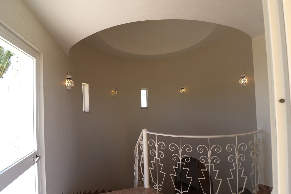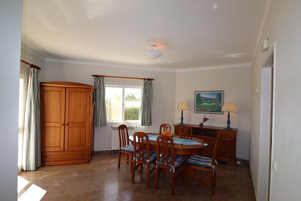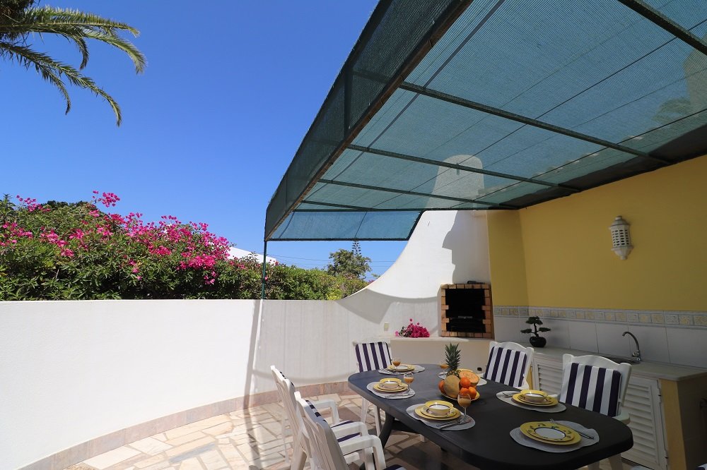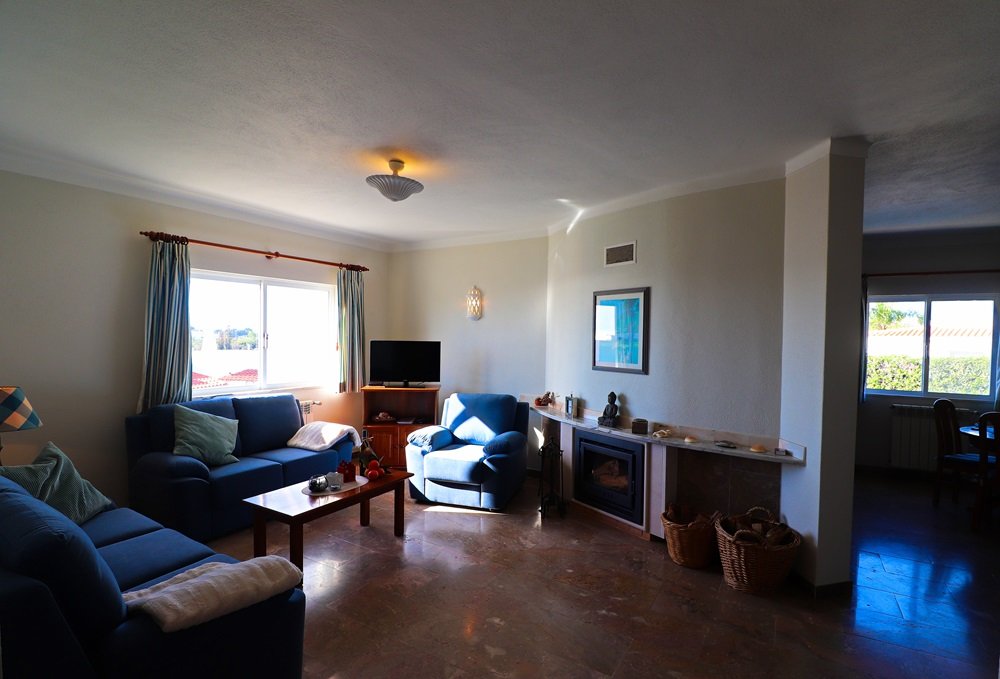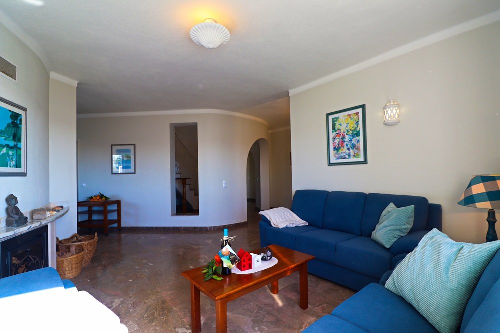 Diese großzügige Villa verfügt über 2 Etagen, einen großen Balkon mit Meerblick, einen schönen mediterranen Garten mit Pool, einen exzellenten Barbecue und vielen Möglichkeiten zum relaxen rund ums Haus. Die oberste Etage beherbergt ein großes Schlafzimmer mit Bad en suite und großem Balkon mit Meerblick! Im Erdgeschoß ist das Herzstück, das riesige Wohnzimmer (TV [&] Kamin) mit extra großem Esszimmer. 2 weitere Schlafzimmer und zwei Badezimmer befinden sich ebenfalls hier unten. Alle 3 Schlafzimmer sind mit Klima/Heizungsanlagen ausgerüstet. Die neue voll ausgestattete Küche und ein gemütlicher Patio (Innenhof) mit gemauertem Grill gleich dahinter sind einfach perfekt. Hier finden Sie eine gehobene und gepflegte Einrichtung vor, Granitboden im Erdgeschoß und eine riesige Wendeltreppe in die obere Etage. Zentralheizung für die kühlere Zeit in jedem Raum vorhanden, Waschmaschine und Geschirrspüler. Im Garten finden Sie idealerweise viele Sitz- und Relaxmöglichkeiten für Sonnen- und Schattenliebhaber. Die große Terrasse am Pool lädt zum sonnen und baden ein. Sie haben hier ein ungestörtes Domizil zwischen Strand und Golfplatz. Von dem Balkon genießen Sie einen sehr schönen Panoramablick auf den Atlantik im Süden. WLAN und Garage inklusive