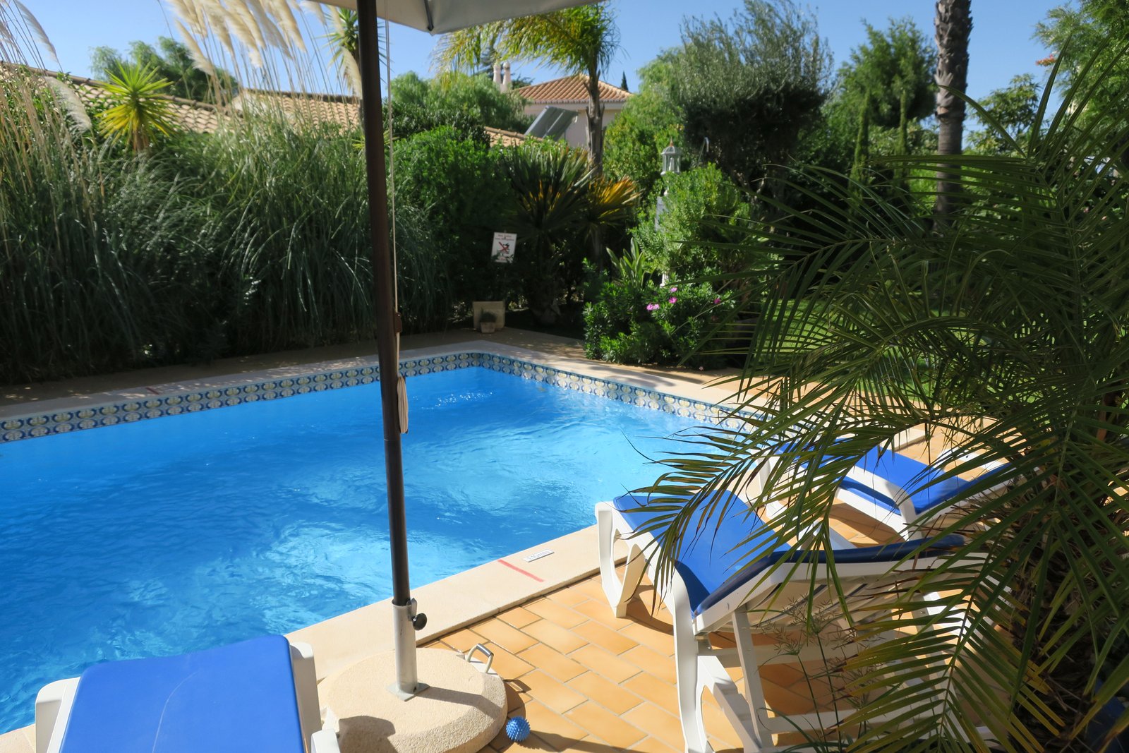 Diese großzügige Villa mit Pool auf einem gepflegten ca. 1000 qm Grundstück, umgeben von Palmen [&] mediterranen Pflanzen verfügt über eine wunderschöne sowie elegante Villenhälfte.2 Etagen, Pool [&] Garten ganz exklusive nur für die Gäste stehen hier zur Verfügung! 2 Schlafzi, 2 Badezi en suite, 1 Gäste-WC, Wohnzi mit Kamin [&] Sat-TV und eine Küche mit Geschirrspüler und Waschmaschine. 2 Klimaanlagen sind hier inklusive und sorgen immer für ein angenehmes Klima. 2 sehr schöne Terrassen zum relaxen lassen keinen Wunsch offen. Die nette Besitzerin kümmert sich vor Ort