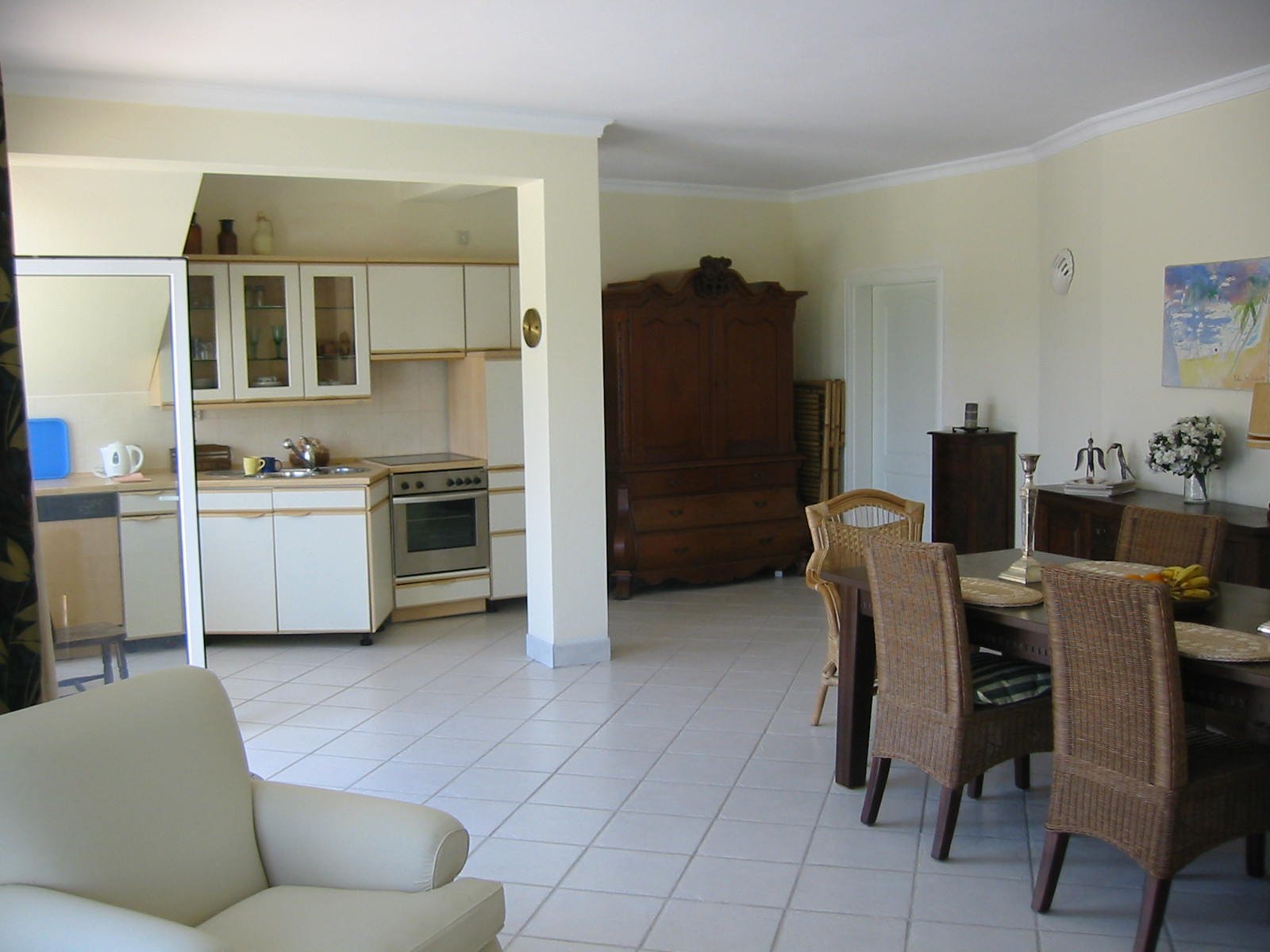 Das Apartment befindet sich im Erdgeschoß direkt am Pool und Garten! Ihnen steht hier ein großes Wohnzimmer mit Essbereich und offener Küche zur Verfügung, 1 Schlafzimmer mit Doppelbett und ein kleines Kinderzimmer mit 1 Einzelbett (+ auf Wunsch 1 Matratze) zur Verfügung. Das Bad verfügt über eine Waschmaschine und Dusche. Geschirrspüler, dt. SAT-TV und Carport machen das Apartment perfekt. Die 2 dt/nl Besitzer bewohnen die obere Etage und kümmern sich um alles.