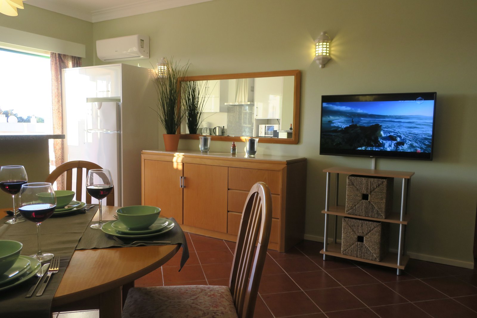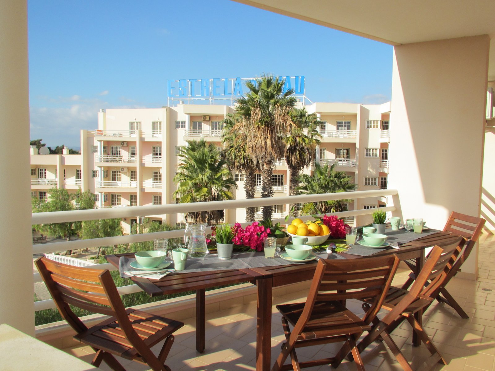 Ein chices, modernes Apartment für Ihren perfekten Strandurlaub. Schön ruhig gelegen und perfekt für 4 Personen. In dem 4 Sterne Hotel Estrela do Vau haben Sie hier Ihr unabhängiges Apartment in der 3. Etage und trotzdem können Sie auf Wunsch die vielen Angebote gegen extra Gebühren nutzen. Der riesige Pool im Garten und Fitness ist kostenfrei. Das Apartment hat 2 sehr schöne Schlafzimmer mit Balkonzugang und je ein Badezimmer. Von dem großem Balkon aus können Sie über viel Grün bis zum Meer sehen. Das riesige lichtdurchflutete Wohnzimmer mit Essbereich und TV bieten allen genügend Platz. Die neue offene Küche ist komplett ausgestattet und macht das Apartment perfekt.